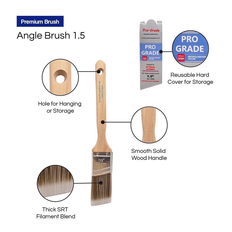 This 12-pack of 2"" Angle Sash Brushes from Pro Grade is a must-have for all painting projects, big or small. These brushes have thick quality, stiff synthetic filaments designed to hold more paint and deliver a premium finish with fewer streaks and in less time. Their durable comfort-grip wooden handles make every project more manageable and less fatiguing. Use these premium brushes with: ✅ All latex and oil-based paints ✅ Stains ✅ Glues ✅ Varnishes ✅ Gesso ✅ Primers ✅ Interior and exterior projects. The high-grade stainless-steel ferrules on these brushes make them withstand many washes for long-lasting use. They're great for all users, from professional painters to DIY painters and hobbyists. Use them with: ✅ Confidence to paint walls ✅ Fences ✅ Outdoor decks trim ✅ Cabinets and many more home improvement projects.