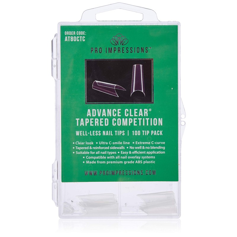 Pro Impressions 100-Piece Advance Clear Tapered Competition Nail Tips Set