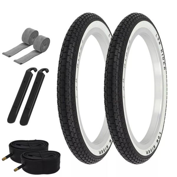 - Set Includes: 2 Tires, 2 Tubes, 2 Pry Tire Levers, 2 Rimstrips