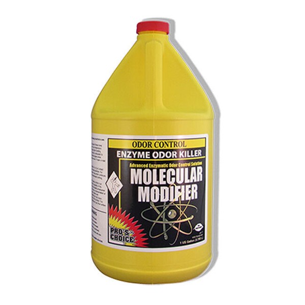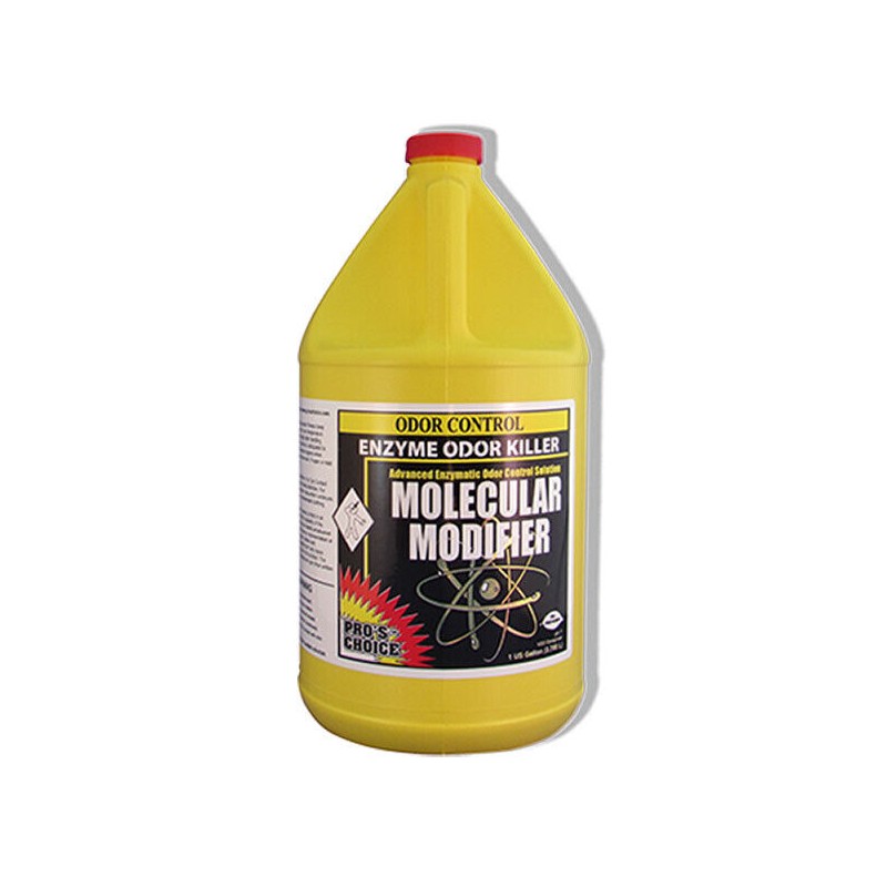 Molecular Modifier is a formulation of cleaning agents, bacterial cultures, enzymes, and odor modifiers which break down the molecular structures of odor causing substances and stains. Removes most odors and stains caused by urine, vomit, feces, blood, mildew, decaying food, and other organic matter. Directions