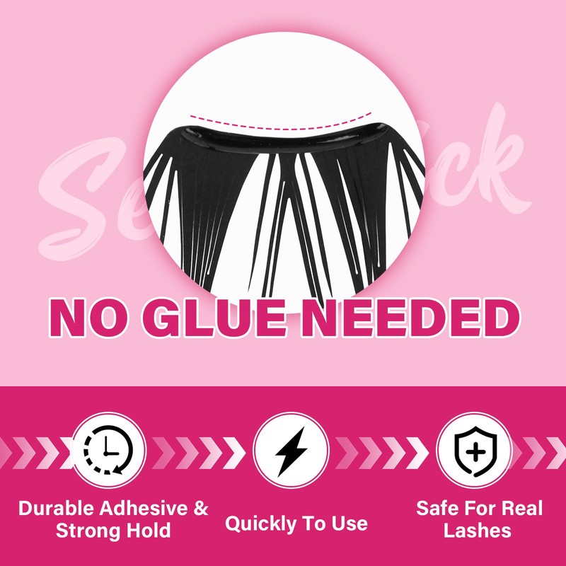 - Der Vorteil dieser selbstklebenden Wimpern mit gebogenem Stiel ist, dass sie sich besser an das Auge anpassen, stärker, natürlicher und unsichtbarer sind. Selbstklebende Wimpern verwenden eine fortschrittliche neue Technologie, die die Notwendigkeit von Kleber oder Entferner eliminiert und keine Kleberückstände hinterlässt, die keine Schäden an Wimpern oder Augen verursachen.