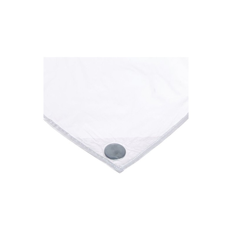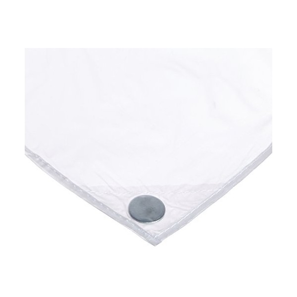 - 4 mil thick plastic with reinforced edge seams and weighted corners