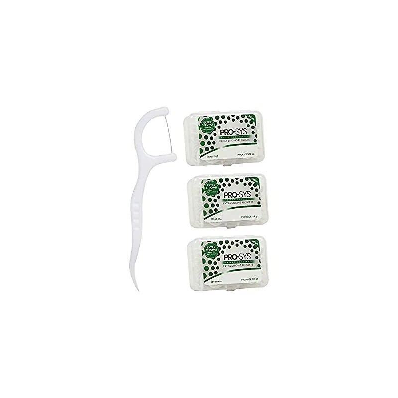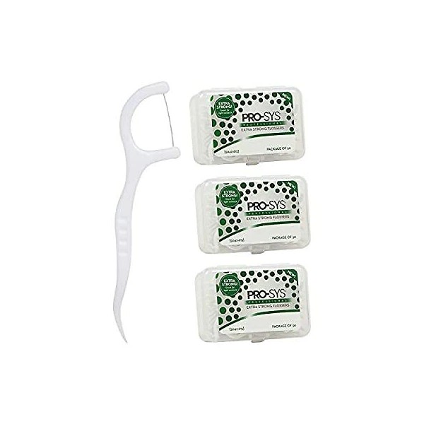 PRO-SYS Extra Strong Flossers with Flosser Pick - 150 Flossers (3 Packs _ 50 Flossers Pe
