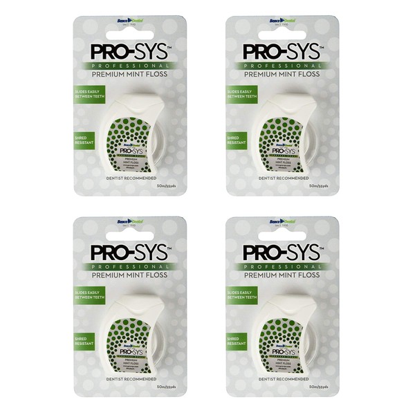 PRO-SYS® Premium Mint Dental Floss, Shred-Resistant, Removes Plaque & Food, Pack of 4 (220 Yards Total)