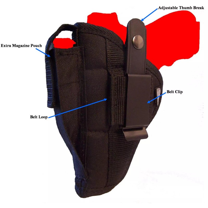 - Holsters for automatics are made with a magazine pouch for extra ammo.