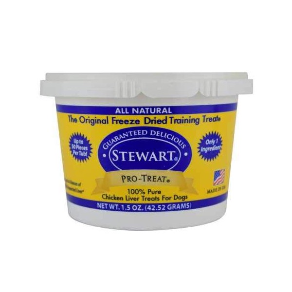 Stewart Pro-Treat chicken liver for dogs is an all natural dog treat made with 100% freeze dried liver. With just one single ingredient, Pro-Treat is a gluten-free dog treat with all of the nutritional value of chicken liver. Considered a high value reward, Stewart freeze dried liver has been one of the best dog training treats on the market for over 40 years. Pro-Treat liver treats are also perfect as a food topper for picky eaters, or anytime you just want to share your love. When it comes to treats, we know that peace of mind is important. Rest assured that our quality standards ensure that you're feeding safe dog treats, as well as the best natural dog treats made in America.