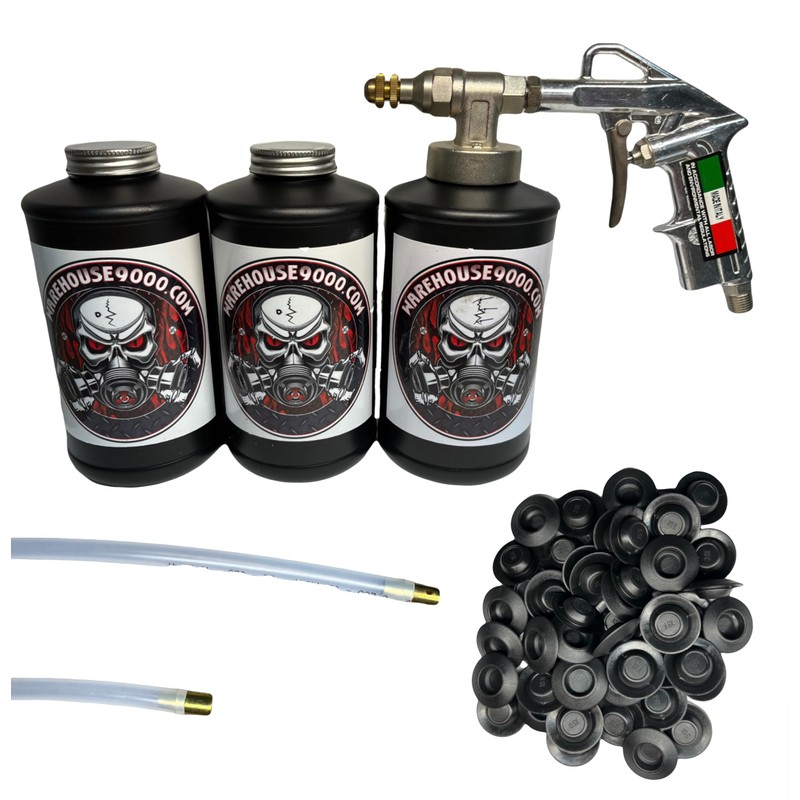 Pro Undercoating Gun kit with 2 Wands, 3 Quart Bottles, and 50 rust plugs
