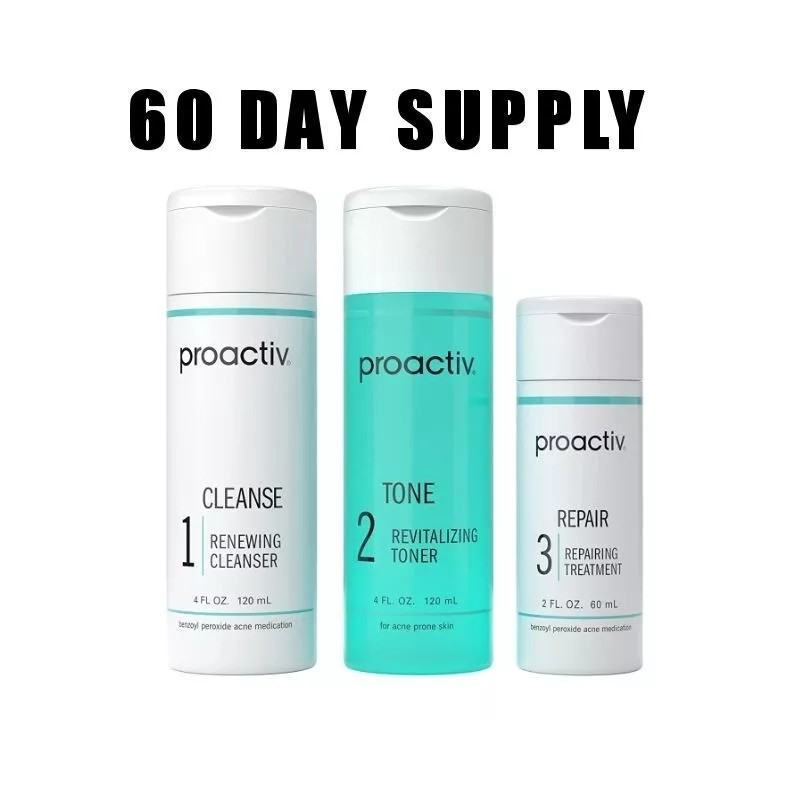 Proactiv 3 Step Acne Treatment, Benzoyl Peroxide Face Wash, 60 Day Complete Kit