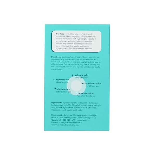 - Dermatologist developed & tested, Proactiv Zits Happen Patches create a skin barrier to help keep skin protected during breakouts, while Hydrocolloid patch technology helps draw out oil and absorb gunk.