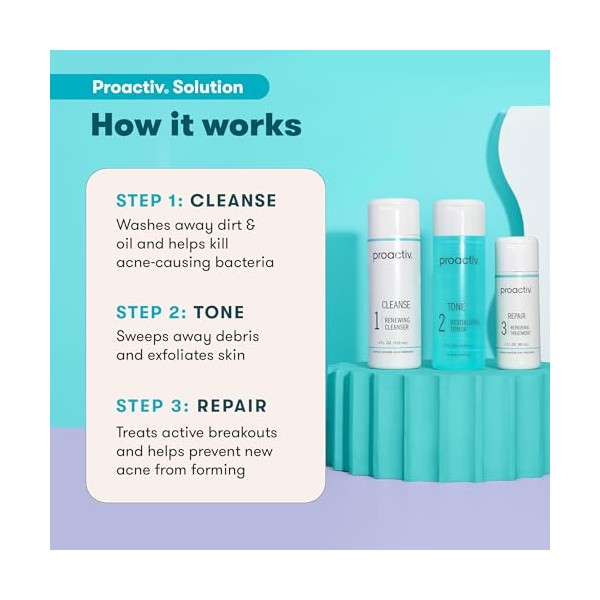• Proactiv Solution 3 Step Acne Treatment System clears existing acne blemishes, soothes inflammation and redness, and helps to prevent new breakouts from occurring