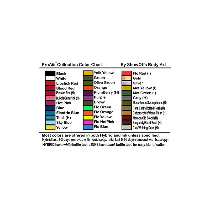 ProAiir Makeup is formulated for use on the face and body and is certified skin safe. Made with the highest quality ingredients, ProAiir provides long-lasting coverage that can last for days. ProAiir is ideal for airbrush application and can be applied by sponge or brush as well. Containing no water, ProAiir has an unlimited shelf-life unopened. Safe, durable coverage, combined with ease of removal using liquid soap, makes ProAiir the special FX makeup of choice of artists around the world.