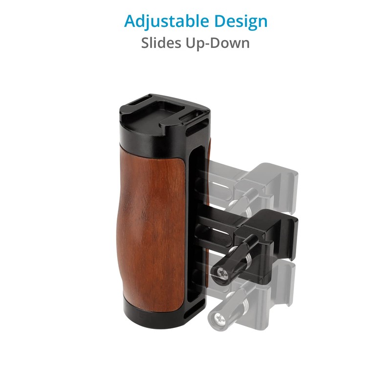 PROAIM Snaprig Wood Mini Side Handle with Up/Down Adjustable Clamp. for Right/Left Side Handgrip with Camera Cages & Rigs. Built-in Shoe Mount & Strap Slot. (WSH-02)