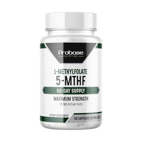 Probase Nutrition Professional Strength L-Methyl Folate 15mg - Active 5-MTHF Form - Supports Mood