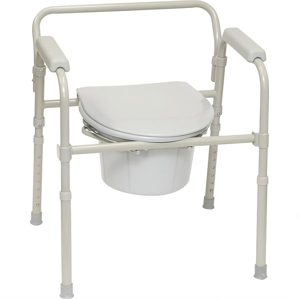 - Versatile 3-in-1 design functions as a commode, raised toilet seat, and toilet safety frame; perfect for bedside use or over a standard toilet, providing essential support and convenience for individuals with limited mobility