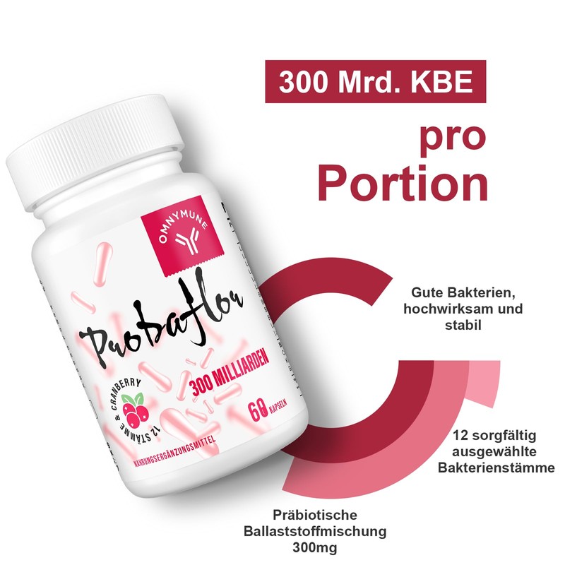 - PERFECT COMBO Omnymune Probio is formulated with 300 billion CFUs probio and plant based prebiotics fiber, such as cranberry, turmeric and goji berry, combined with specially selected strains for women, making it more powerful.