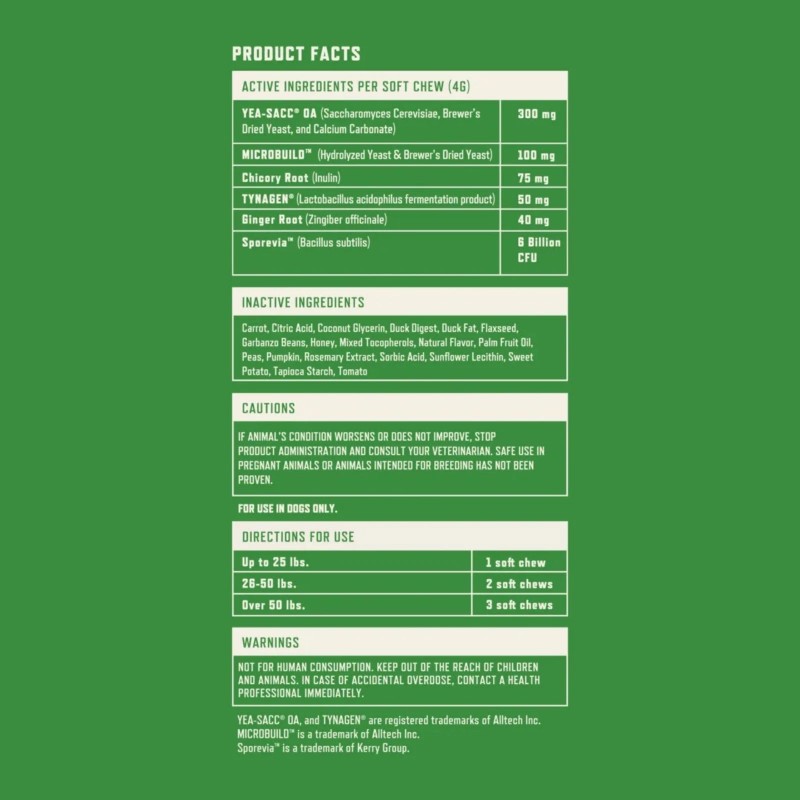 - Unparalleled Support – Our delicious duck-flavored soft chews provide maximum support for your dog’s digestive system and overall gut health. We combined pre-, pro-, and postbiotics at high levels of concentration and purity, because your pet deserves the best.