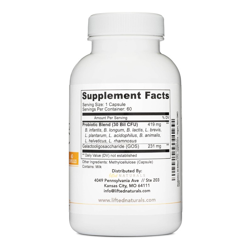 Lifted Naturals Mood Boosting Probiotic 30 Billion CFU - Mood Support Supplement, Prebiotics and Probiotics for Women & Men, Acidophilus Lactobacillus Probiotic, Shelf Stable & Non-GMO, 60 Capsules