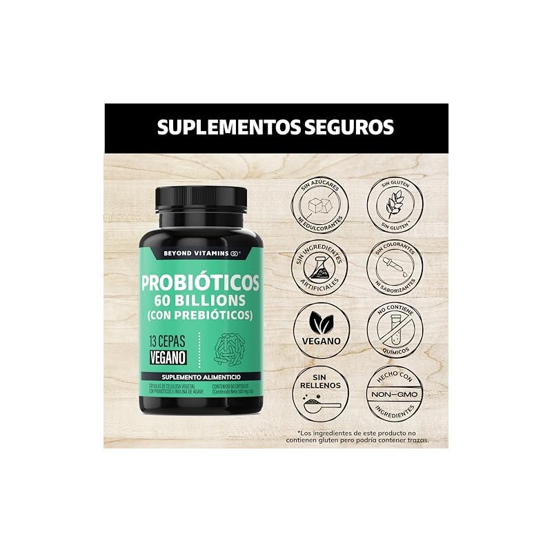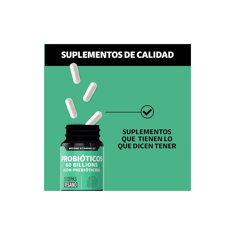 BEYOND VITAMINS - Probioticos 60 Billion UFC + Prebióticos+ inulina de agave | 13 cepas | Fórmula Completa | Con Tecnología de microencapsulación de 4 capas | Para Hombres y Mujeres | Sin Rellenos | Vegano |60 cápsulas. ✅ Diseño innovador que supera las expectativas. Construcción robusta y atención al detalle. ⭐ Miles de reseñas positivas. Ideal para quienes buscan lo mejor en calidad y estilo. Producto auténtico con satisfacción total asegurada. ¡No te quedes sin el tuyo y aprovecha esta oportunidad única!