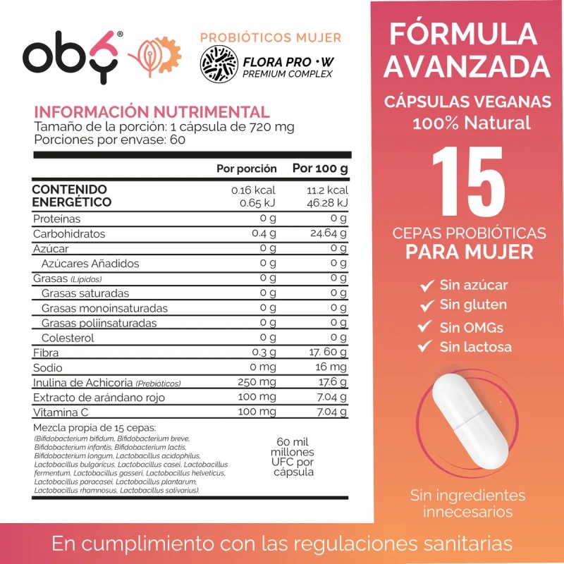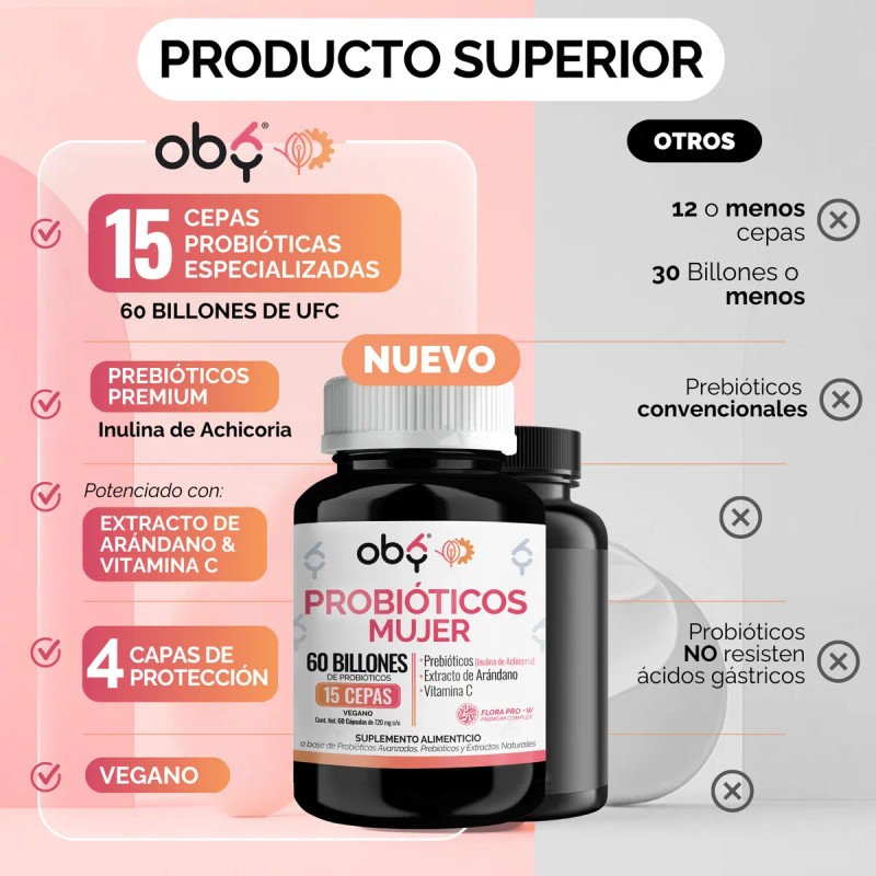 Probioticos Femeninos 60 Billones 15 Cepas + Prebioticos Oby
