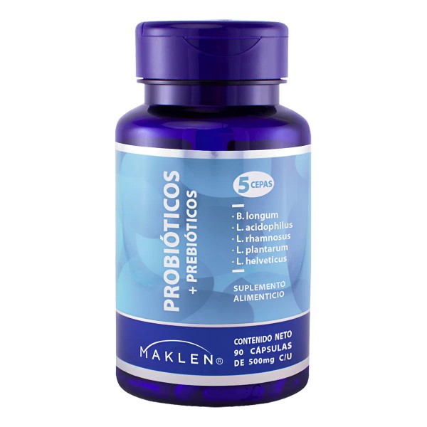Probióticos + Prebióticos 90 Cápsulas 5 Cepas Inulina de Agave Maklen