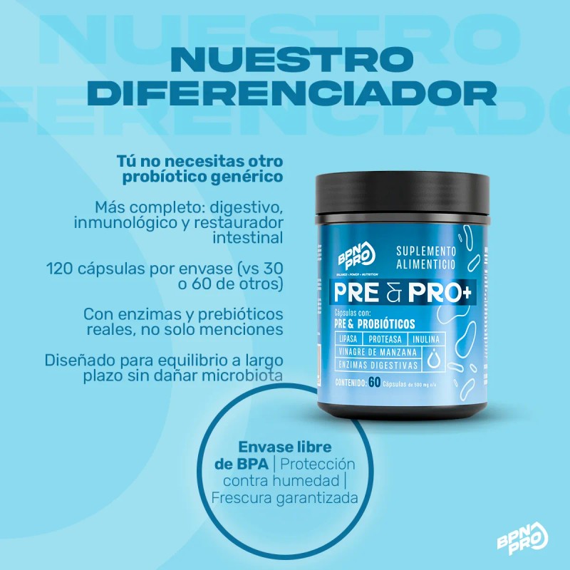 Probióticos + Prebióticos | Inulina, Enzimas Digestivas, Papaya, Bromelina, Lipasa, Vinagre de Manzana | Apoya La Digestión, Absorción de Nutrientes Y Bienestar General | Pre&Pro BPN PRO 60 Cápsulas