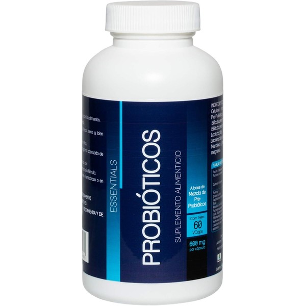 PROBIÓTICOS Y PREBIÓTICOS | Mezcla de 7 cepas | Contiene FOS | 60 Cápsulas de origen Vegetal | Salud y Bienestar con Essentials