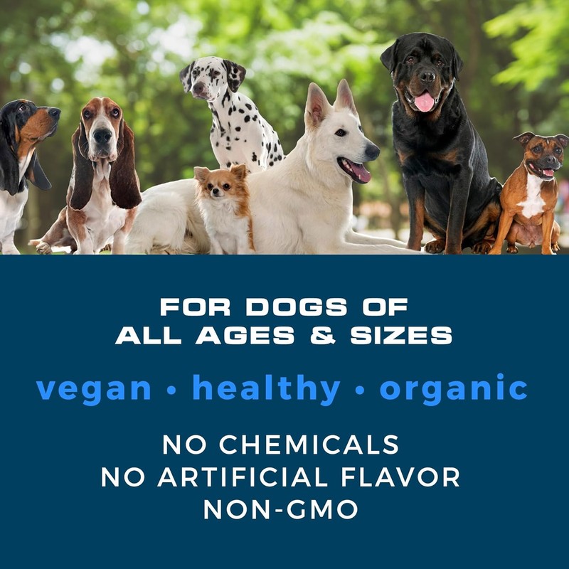 Designed for small, medium, and large dogs, from playful puppies to seniors. These vegan, grain-free, non-GMO chews are free from wheat, corn, soy, chemicals, and artificial flavors. Serve daily as a treat or crumble into food for added convenience. Supports digestive health along with skin, coat, eye, and urinary wellness.