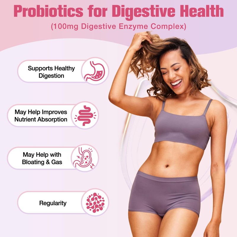 Specifically designed for feminine health and overall digestive wellness, our probiotic blend features 15 probiotic strains and 100 billion CFUs. This high-potency formula supports digestive health, boosts immunity, and promotes urinary tract wellness.