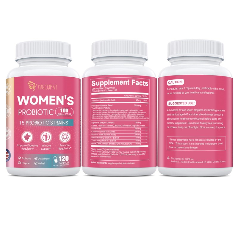 Probiotics for Women, 100 Billion CFU Womens Probiotic with Prebiotics, Digestive Enzymes, D-Mannose & Cranberry Extract for Immune Support, Vaginal & Urinary Health, Digestive Balance - 120 Capsules