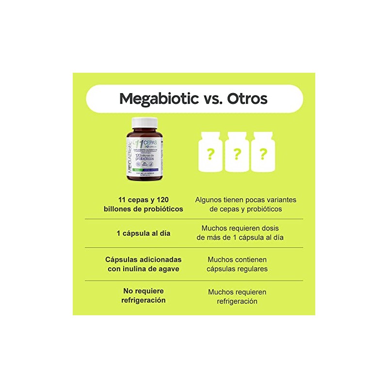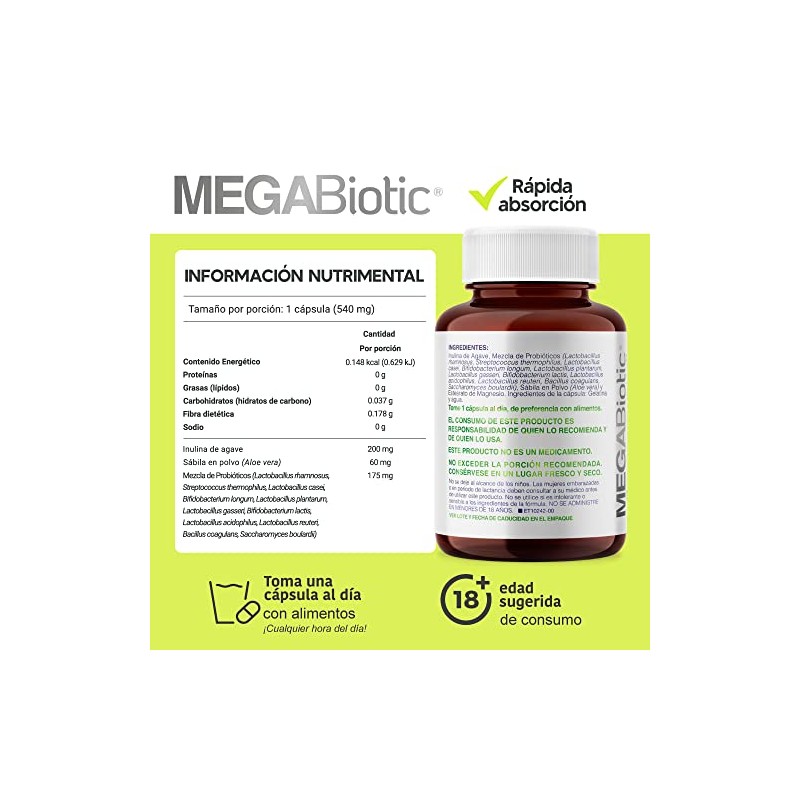 MegaBiotic - Probióticos 120 Billones y 11 Cepas e Inulina de Agave | Suplemento Alimenticio con Probióticos y Prebióticos con Aloe Vera y L. Rhamnosus |Cont. 90 caps, MegaBiotic. ⭐ Calidad premium certificada con excelentes reseñas. Tecnología avanzada y rendimiento superior. 🏆 Recomendado por expertos. Ideal para quienes buscan lo mejor en calidad y estilo. Producto auténtico con satisfacción total asegurada. ¡No te quedes sin el tuyo y aprovecha esta oportunidad única!