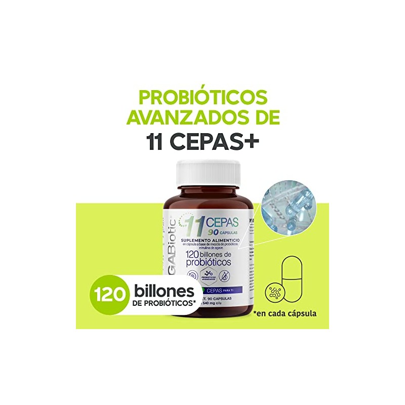 Probiticos 120 Billones y 11 Cepas e Inulina de Agave Suplemento Alimenticio con Probiticos y Prebiticos con Aloe Vera y L. Rhamnosus Cont. 90 caps,