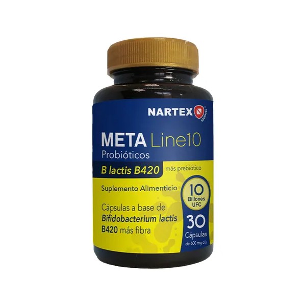 Meta Line10 de Nartex es un suplemento probiótico diseñado para promover el equilibrio de la flora intestinal, mejorar la digestión y fortalecer el sistema inmune.