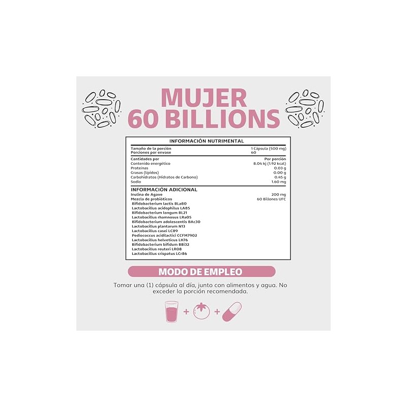 Probiticos Mujer 60 Billion Prebiticos Inulina de Agave 12 Cepas con tecnol...