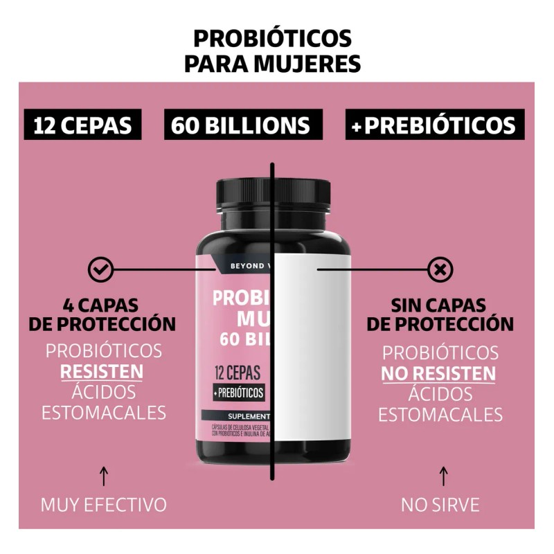 🌟 ⭐ Probióticos Mujer 60 Billion + Prebióticos (prebiotic) + Inulina de Agave 12 Cepas Beyond Vitamins - Probióticos femeninos - Probióticos Vaginales Flora - Candida Cleanse Fibra - 60 Cápsulas ⭐ 🌟