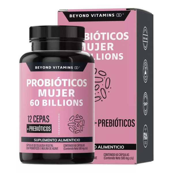 Probiticos Mujer 60 Billion  Prebiticos (prebiotic)  Inulina de Agave 12 Cepas Beyond Vitamins - Probiticos femeninos - Probiticos Vaginales Flora -
