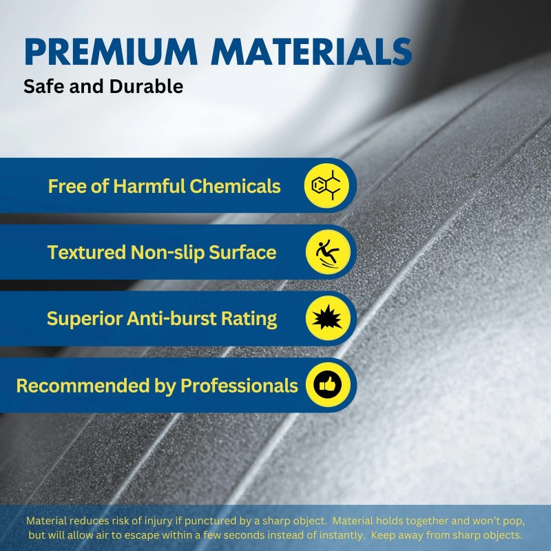 ANTI BURST AND SLIP RESISTANT: A work out ball with sturdy PVC to withstand the most punishing workouts. This heavy duty stability ball is rated beyond 330 lbs of weight; safe as a pregnancy ball or birthing ball.