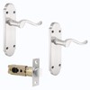 Probrico 1 Pack Scroll Shaped Door Handles with Adjustable Tubular Latch(45mm/57mm) Internal Door Levers on Backplate Satin Nickel