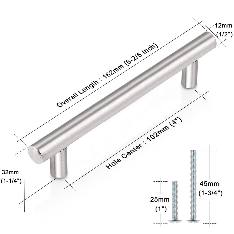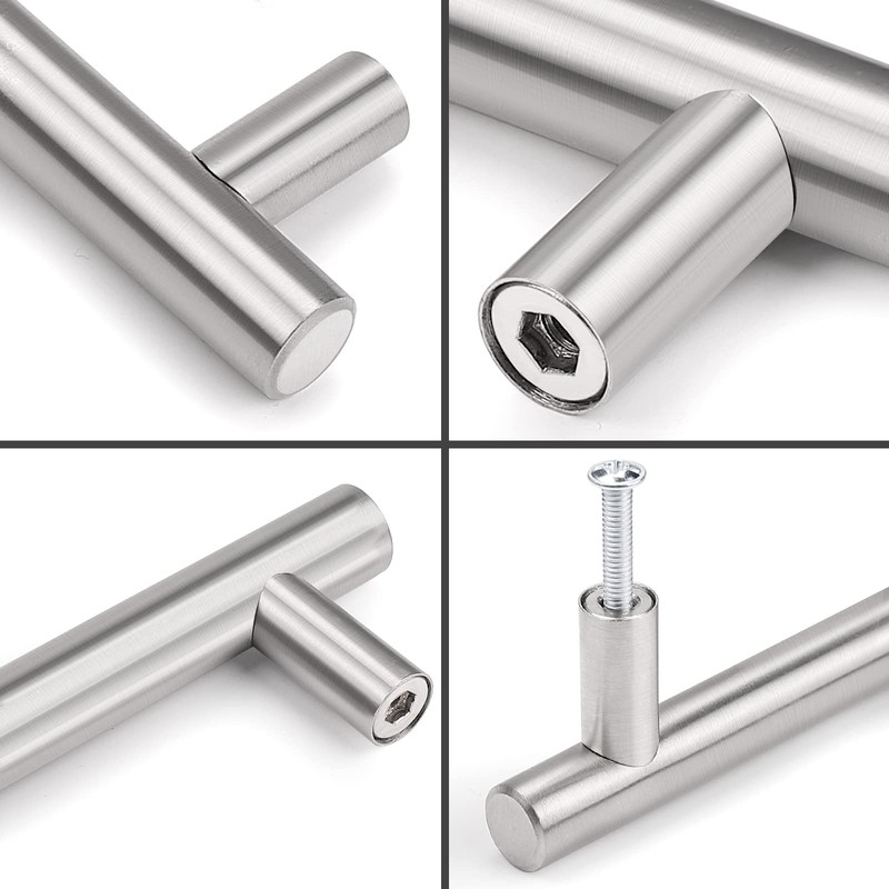 - Pack of 10 Brushed Nickel Finish Satinless Steel Kitchen Cabinet Pulls, Hollow & Lightweight but Sturdy & Durable. Easy Installation.