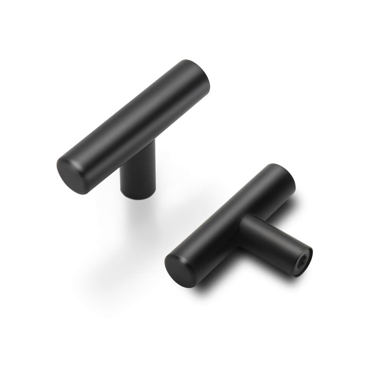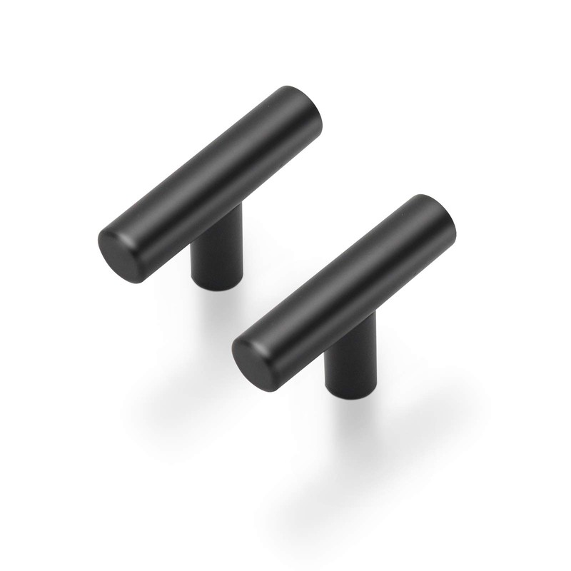Probrico 15 Pack|Flat Black Cabinet Knobs Single Hole 2 Inch Euro Cabinet Pulls Drawer Handles Kitchen Cupboard T Bar Knobs