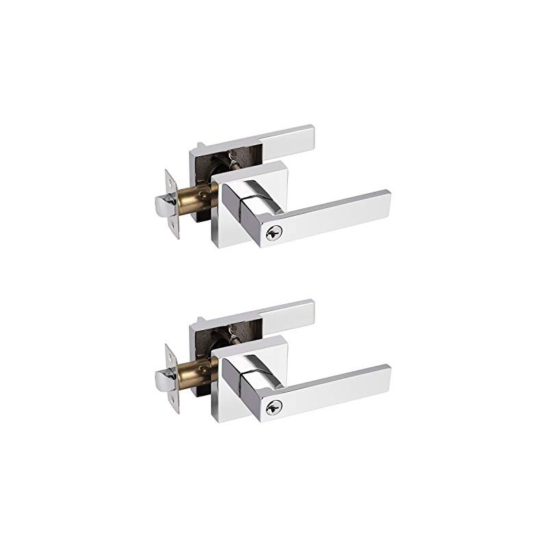 Probrico 2 Pack Square Keyed Alike Entry Levers Locks, Polished Chrome Heavy Duty Entrance Door Handles, Right and Left Handing Doors Hardware[Exterior Interior Doors]