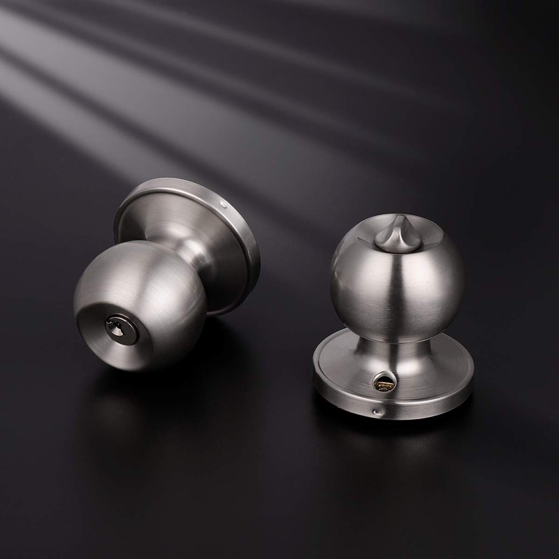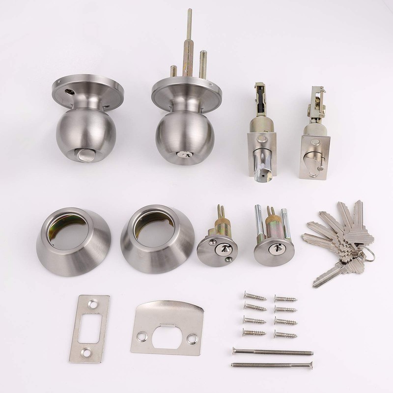 - [Entry door knob and double cylinder deadbolt set]This door handleset includes entry door knobs and double cylinder deadbolt,entry lock can be locked/unlocked with a key from the outside and turn button from the inside.double cylinder deadbolt can be locked/unlocked with a key from the outside and inside.