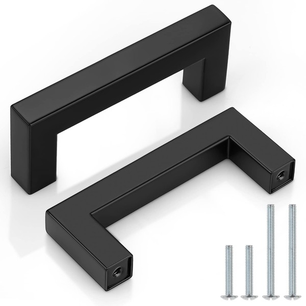 Probrico (20 Pack Matte Black Cabinet Pulls Square Drawer Handles 3 Inch Hole Center Kitchen Cabinet Hardware Stainless Steel Drawer Pulls