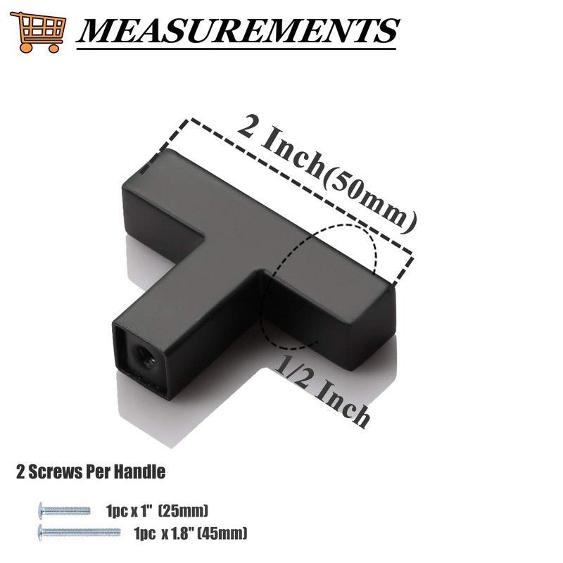 - 【Dimensions】 SINGLE HOLE square bar knobs; Total Length: 2"(50mm), Width: 1/2"(12mm), Thickness: 1/2"(12mm), Projection: 1-2/5"(35mm).