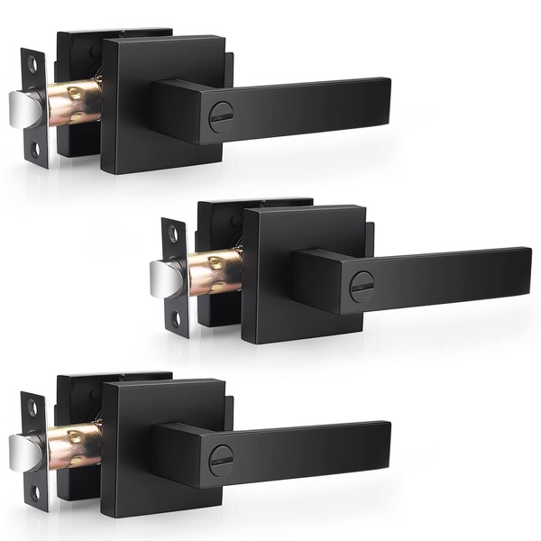 Probrico 3 Pack| Matte Black Square Privacy Door Levers Heady Duty Interior Door Handles, Keyless Locks Reversible Handlesets for Bed/Bath