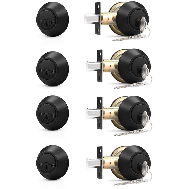 Probrico 4 Pack Black Double Cylinder Deadbolt Lock, Round Keyed Both Side Door Lock,Keyed Alike