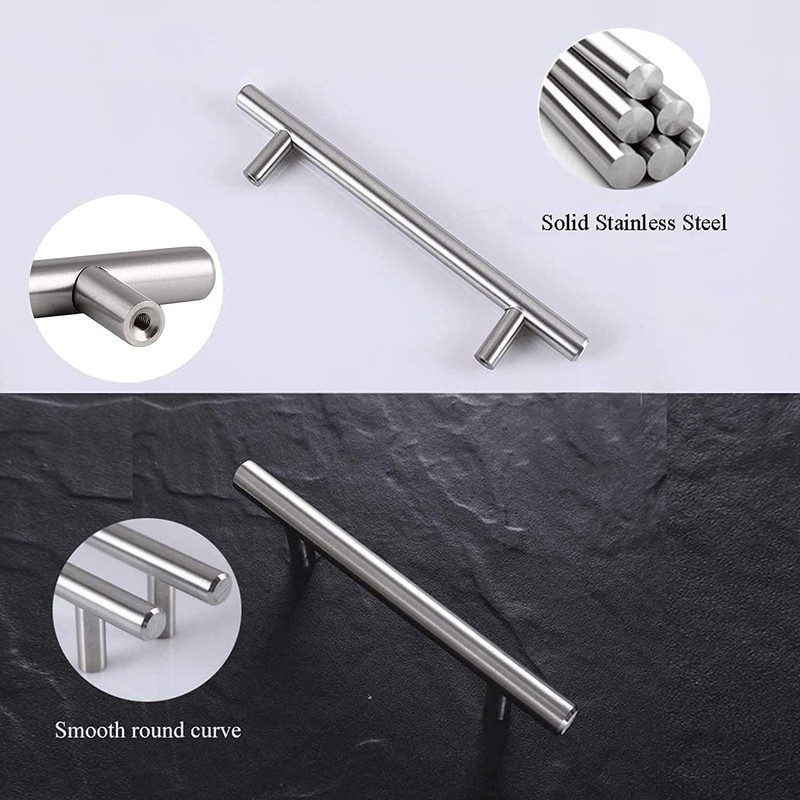 Probrico 5 Pack 2-1/2" Hole Center Solid Stainless Steel T Bar Cabinet Pulls Modern Euro Style Brushed Nickel Kitchen Cupboard Handles Dresser Drawer Knobs Kitchen Cabinet Hardware 4" Length