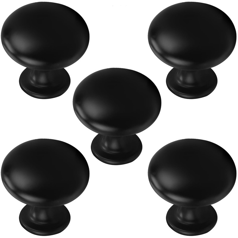 Probrico 5 Pack Cabinet Round Knobs in Black Finish,Kitchen Cabinet Pulls Hardware,1-3/16 inch(29.5mm) Diameter Furniture Pull Knobs