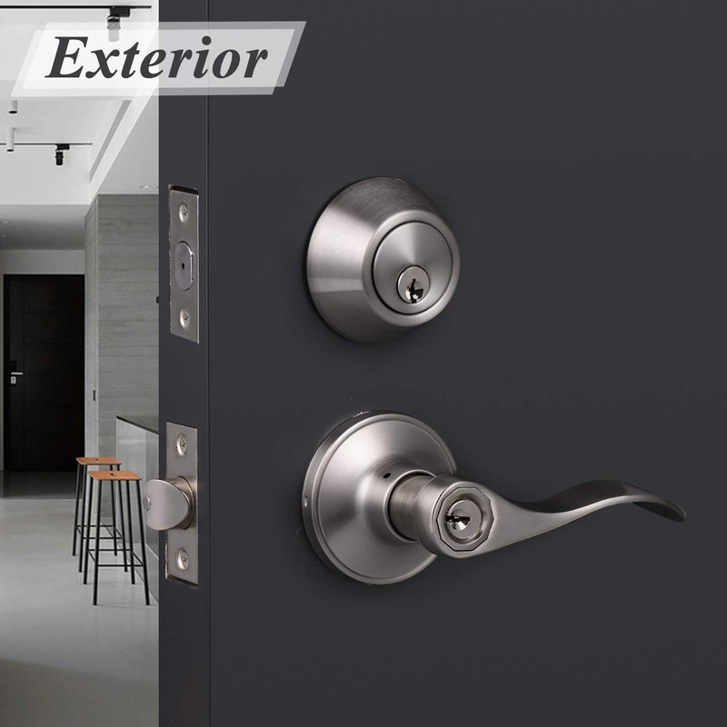 - 【Keyed Alike Double Cylinder Deadbolt】-- If you purchase a multi-set(12 sets at most, if you need more ones, contact with customer service), of a nickel door lock and a single cylinder deadbolt, they will all have the same keys.The lockset comes with a double cylinder deadbolt, and it could be locked and opened by keys from both side. It will be best used for your house or office where a higher security is needed