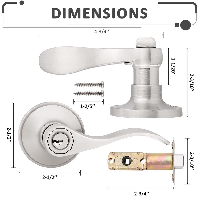 - Material: stainless steel, zinc alloy; satin nickel finish; modern wave style levers.Package Includes: Selected Knobs, Mounting Screws, Installation Instructions;please check these parts before install,If there is any quality problem with your purchasing, please contact us. We will refund the item value or send a replacement.