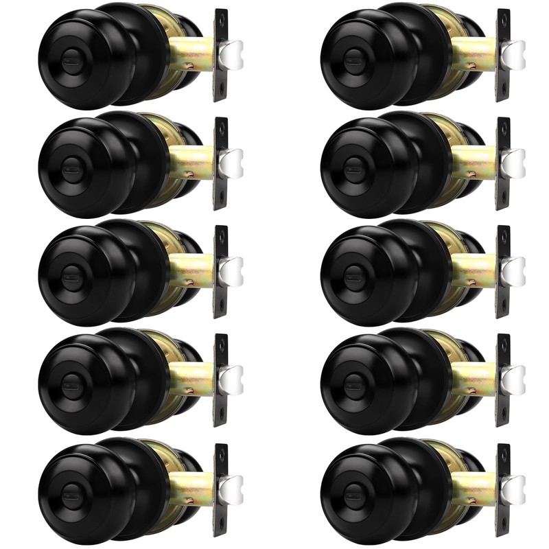 Probrico Bathroom Door Knobs, 10 Pack Interior Door Handles Privacy Function, Keyless Doorknob for Bedroom Bath, Matte Black Finish Door Knob with Solid Latch